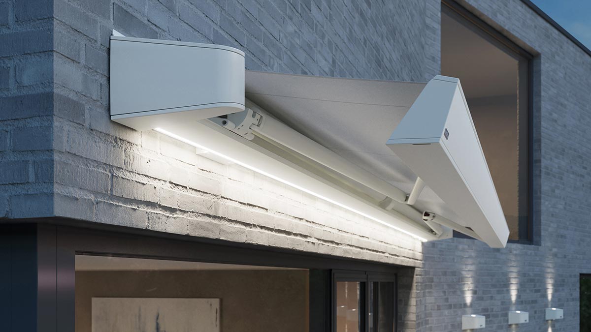 Die schlanke ovale Kassettenmarkise punktet mit Stabilität und Vielseitigkeit gerade bei großen Flächen.