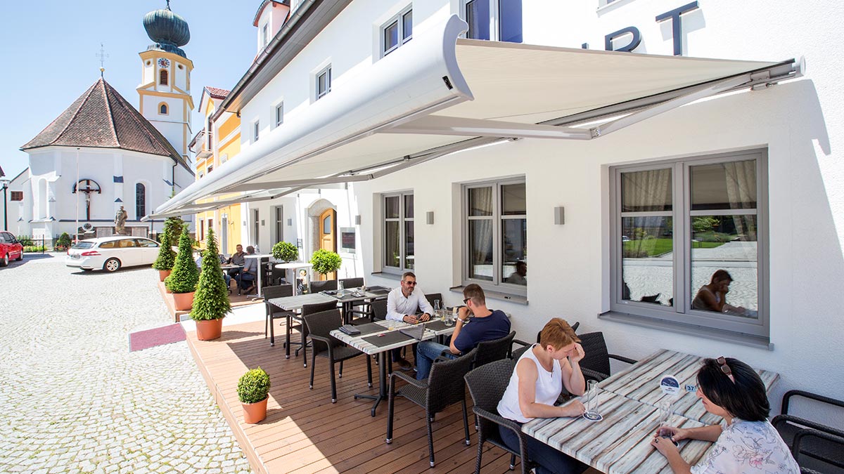 Der Gastronom oder Hotelier erhält mit raffinierter Außenbeschattung einen klaren Nutzen für sein Geschäft, seinen Gästen durch Markisen mehr Komfort zu bieten. Denn auch wenn es kühler wird, können Gäste draußen immer noch in entspannter Atmosphäre essen und trinken. Dadurch bleiben Gäste länger und der Umsatz steigt.
